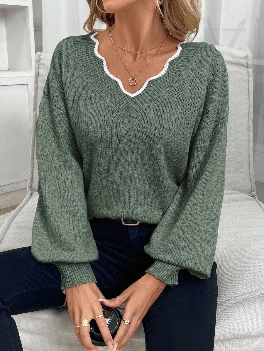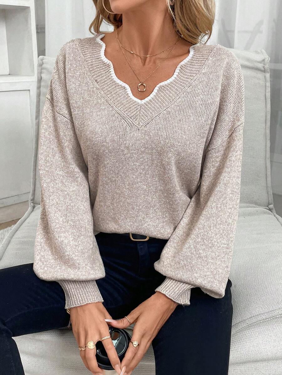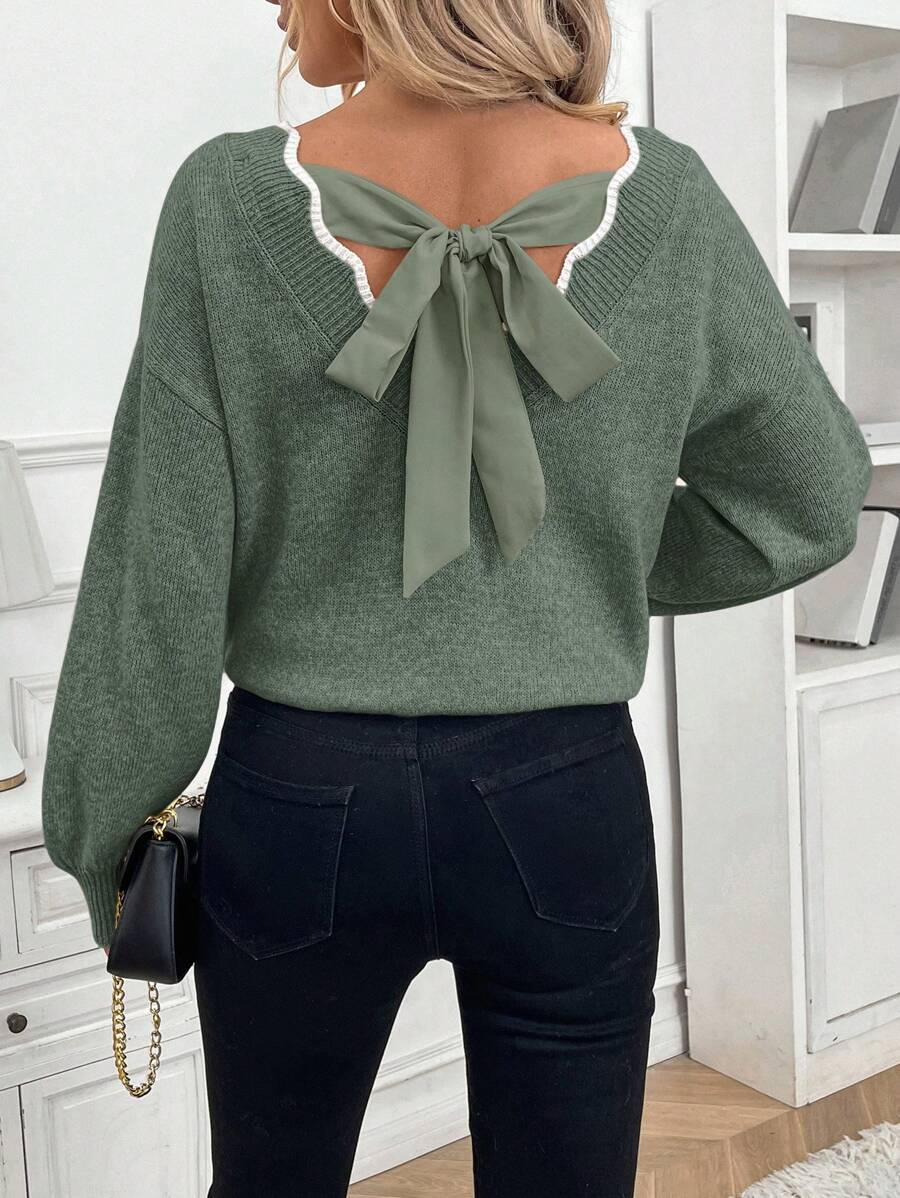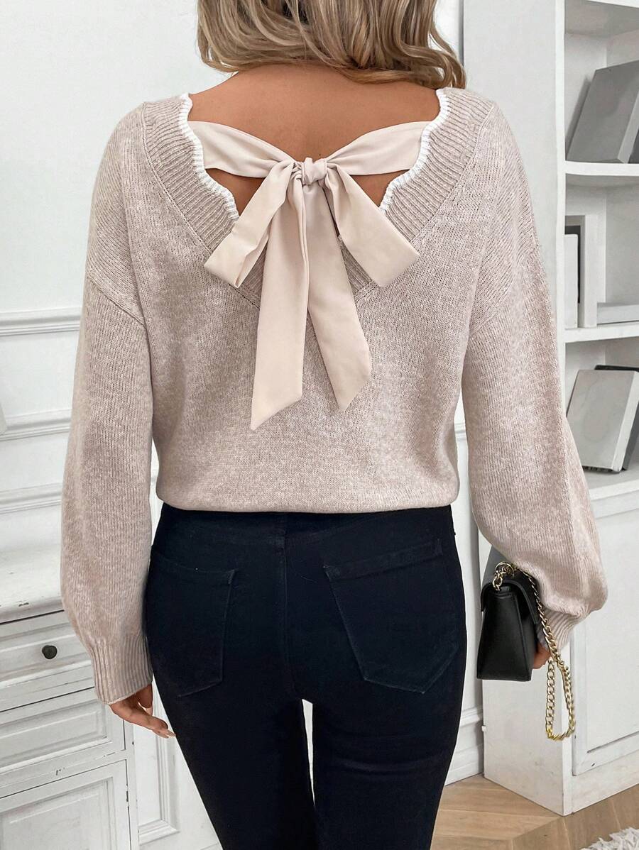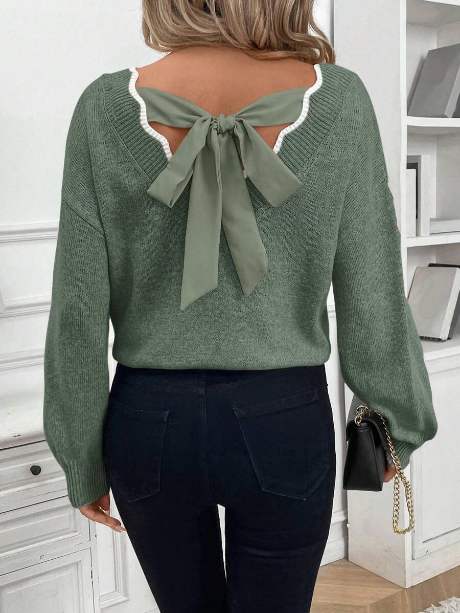 Maglione casual con orlo a contrasto, allacciatura sul retro