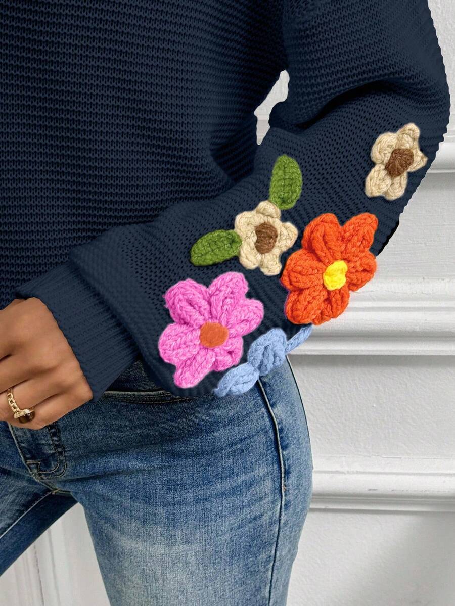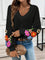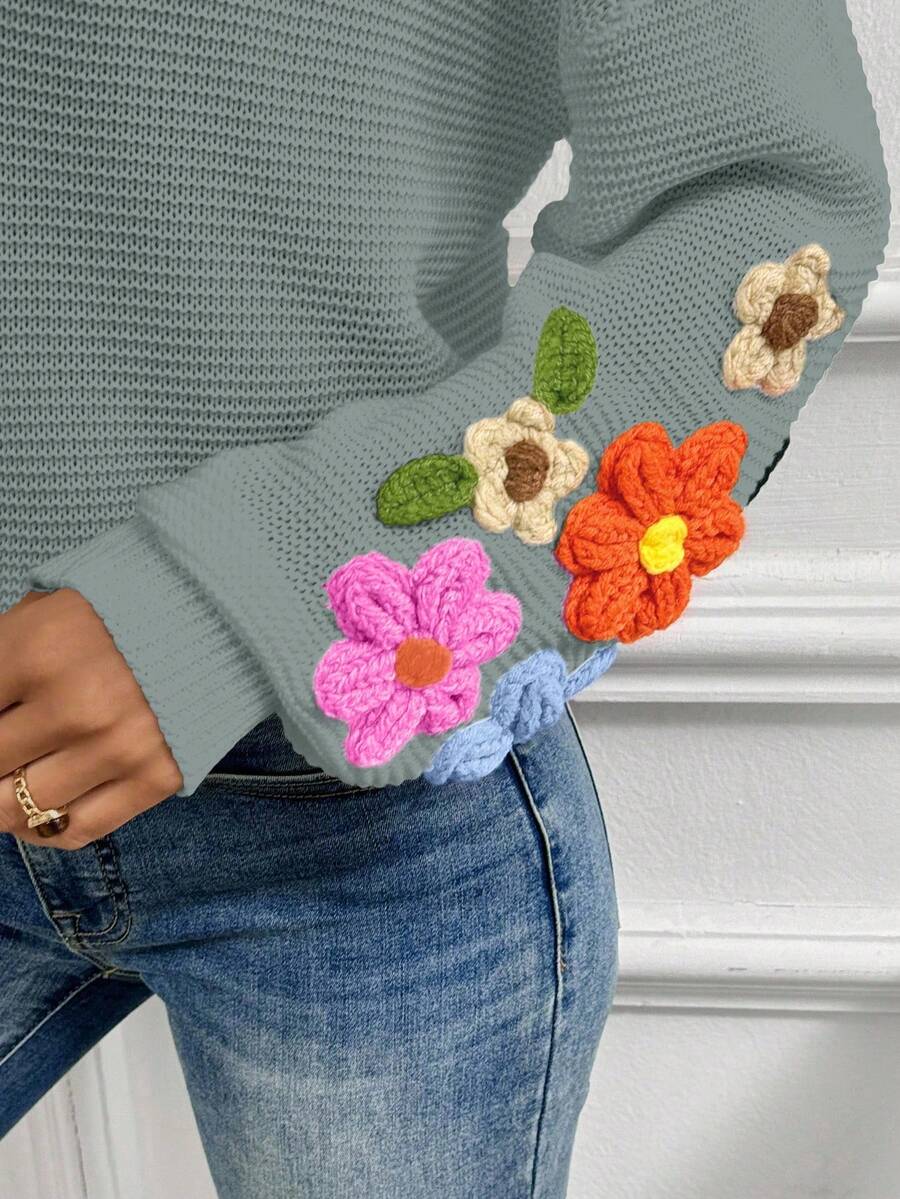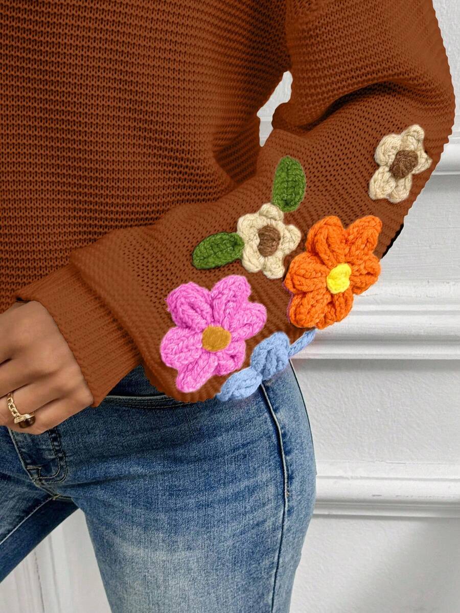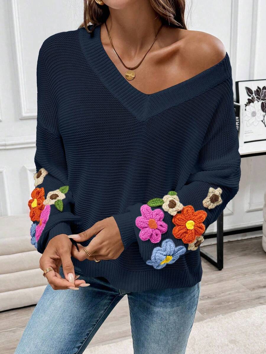 Maglione casual da donna con scollo a V, maniche a lanterna a uncinetto, manica lunga