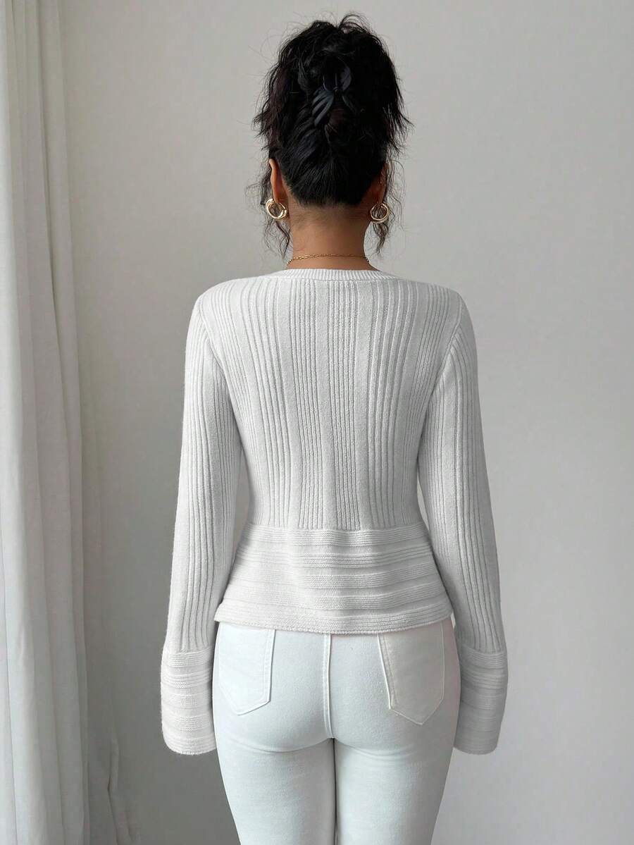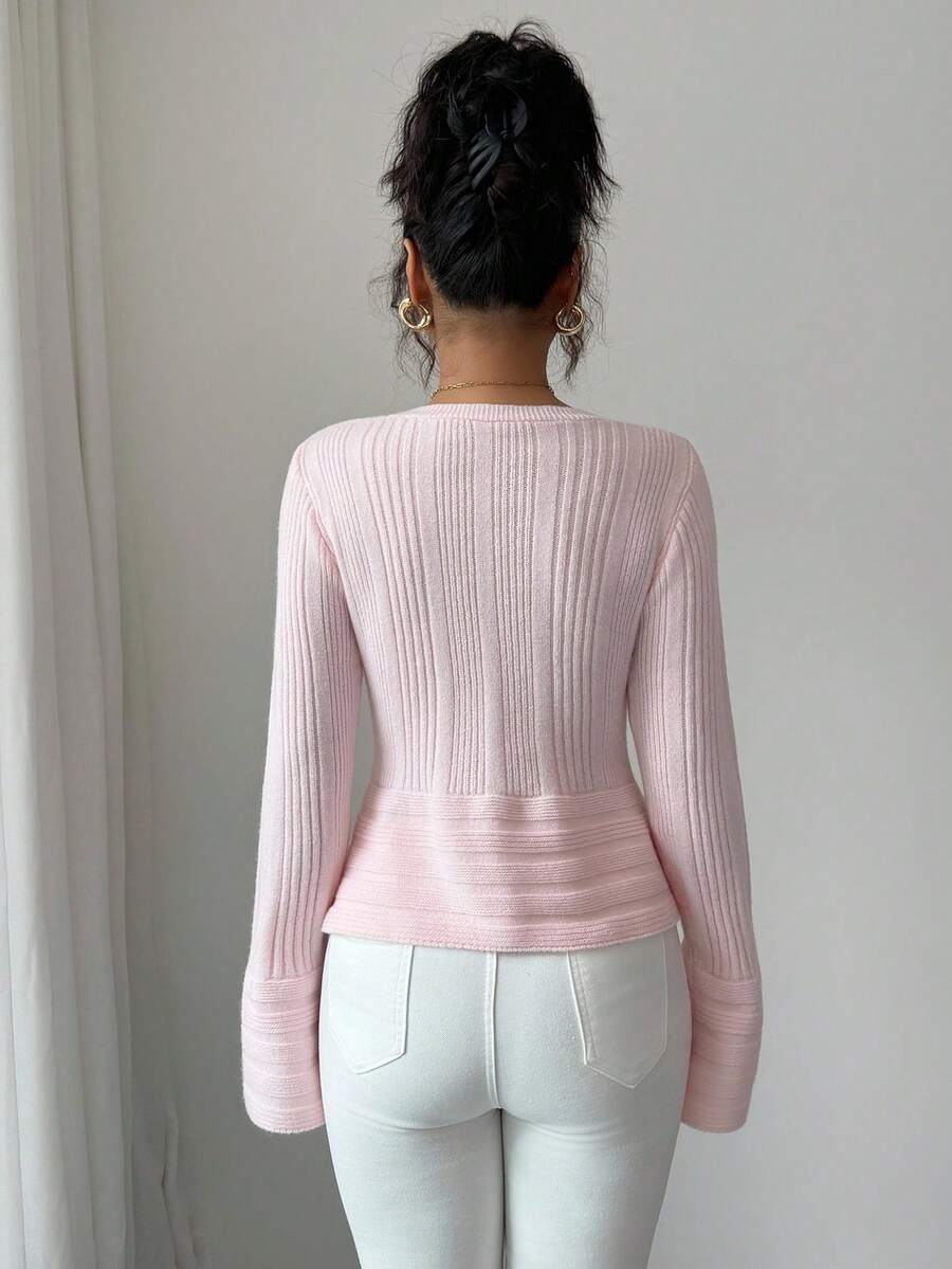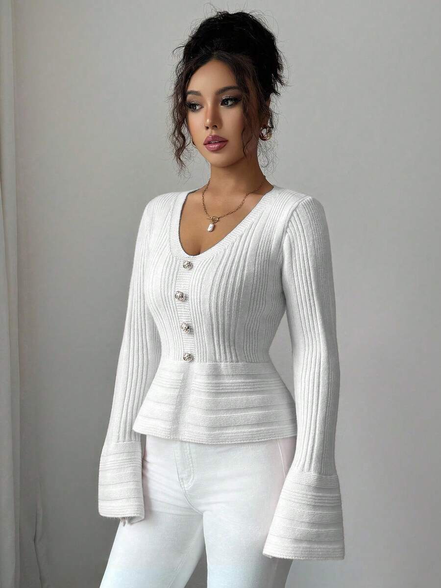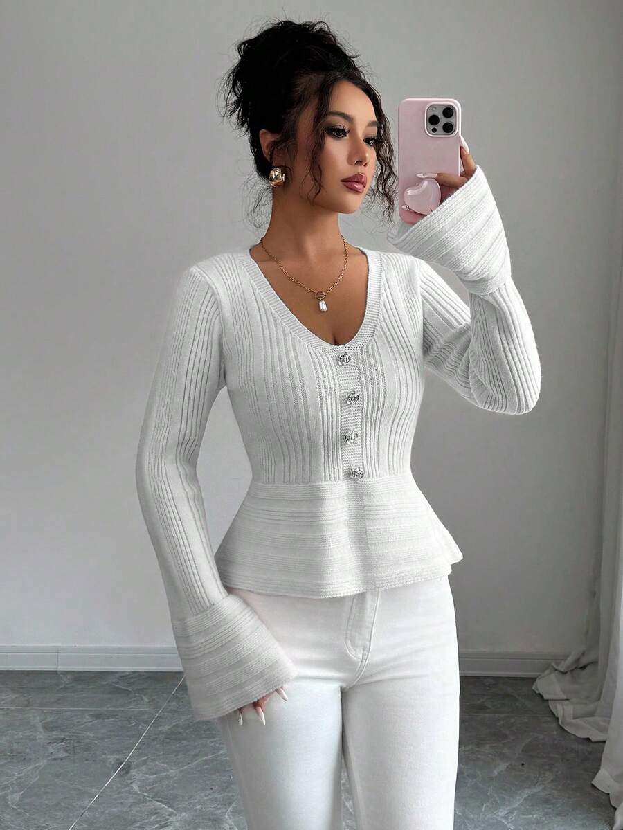 Maglione da donna fashion con scollo a V e maniche a sbuffo