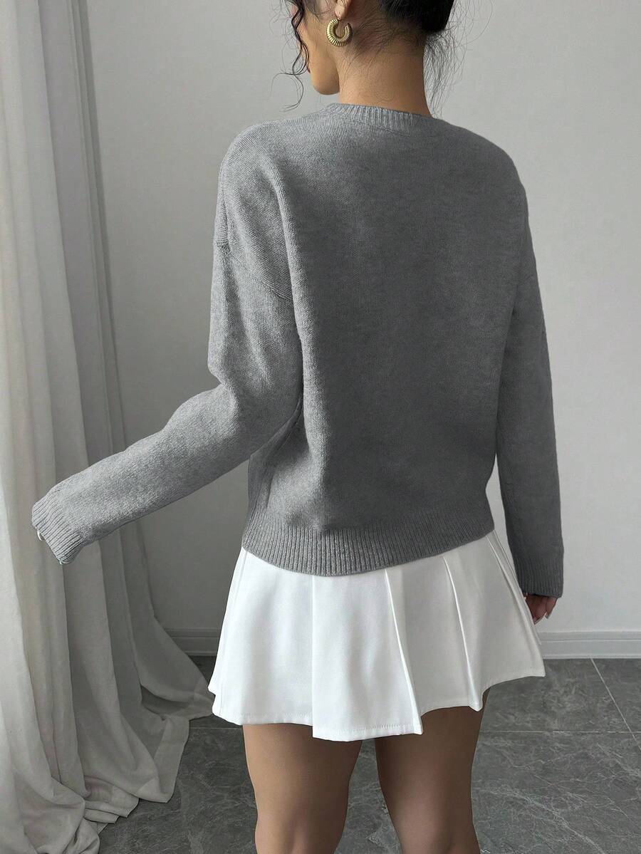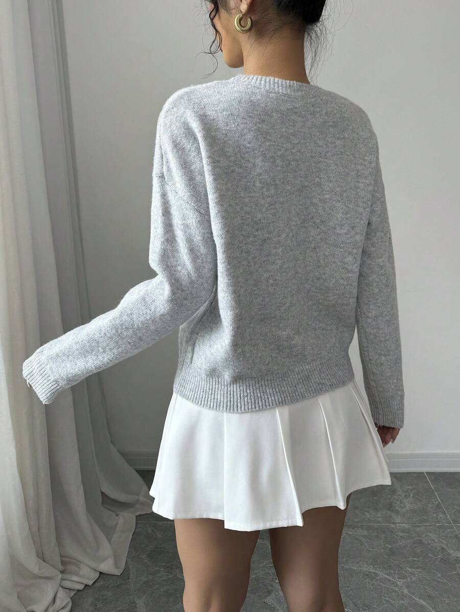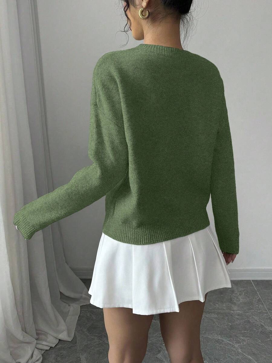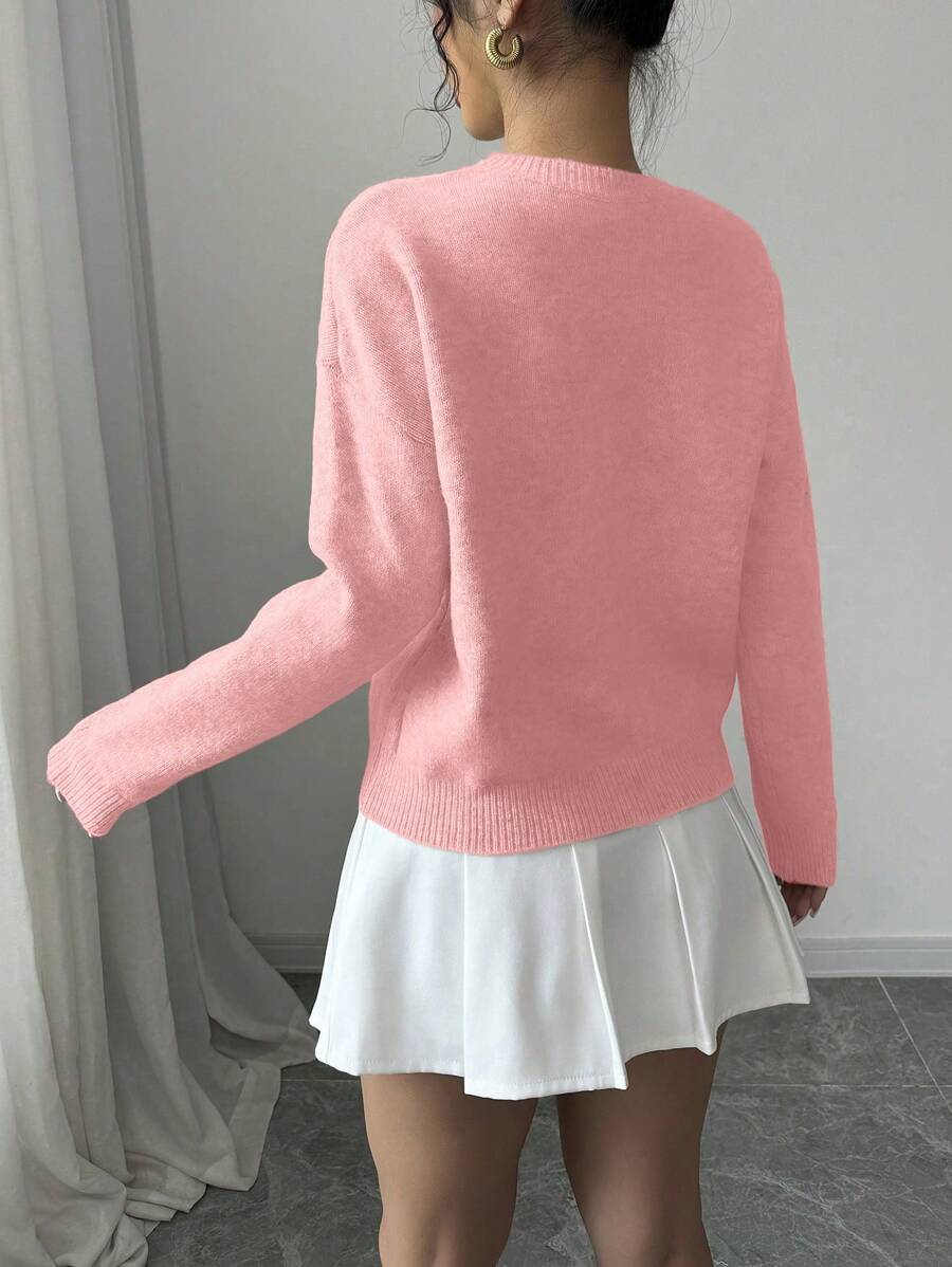 Maglione donna con collo a giro, motivo floreale, tinta unita, maniche lunghe