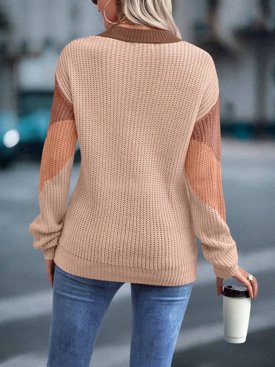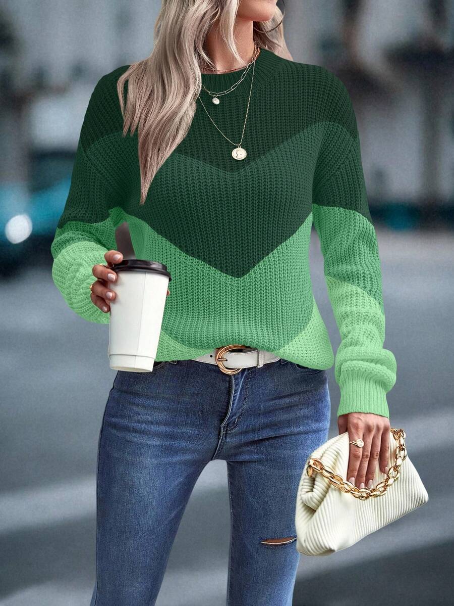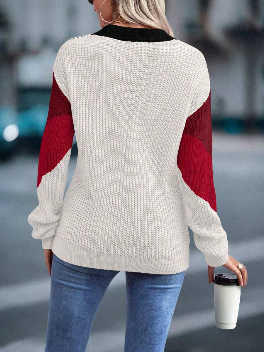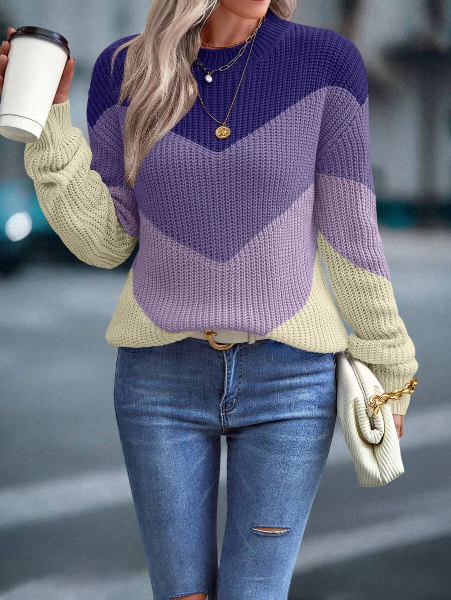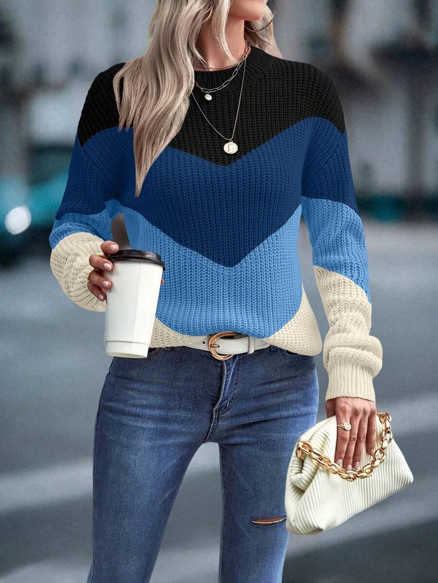 Maglione oversize con maniche lunghe e motivo a chevron a blocchi di colore